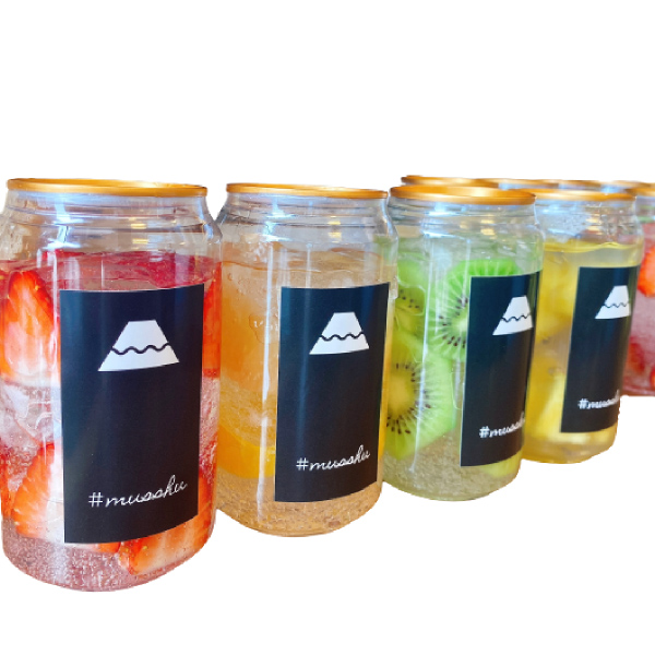 缶×スイーツ!しゅわしゅわゼリーとフレッシュフルーツです。