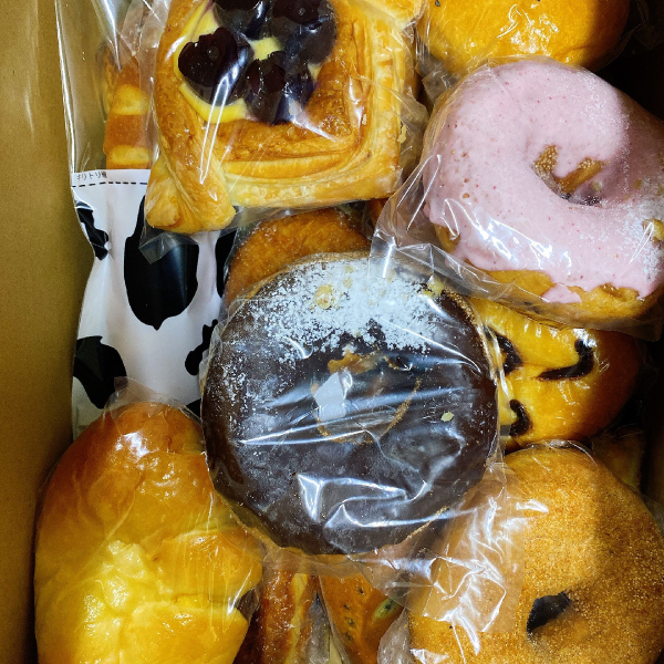 【マリトッツォ4個】と【ムッシュオリジナルパン15個】のセットです。